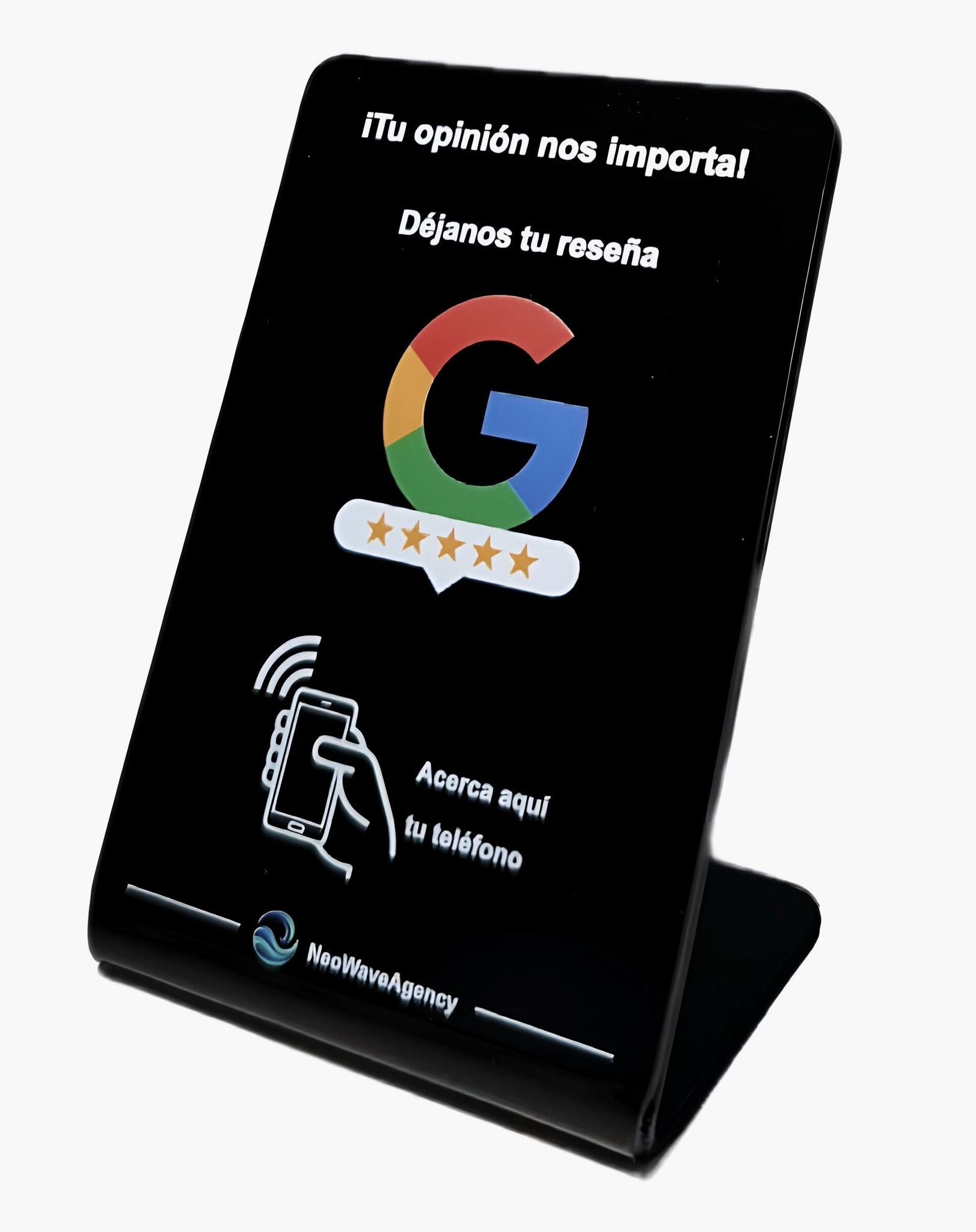 Con nuestro stand acrílico NFC, tus clientes dejan una reseña al instante solo acercando su móvil.